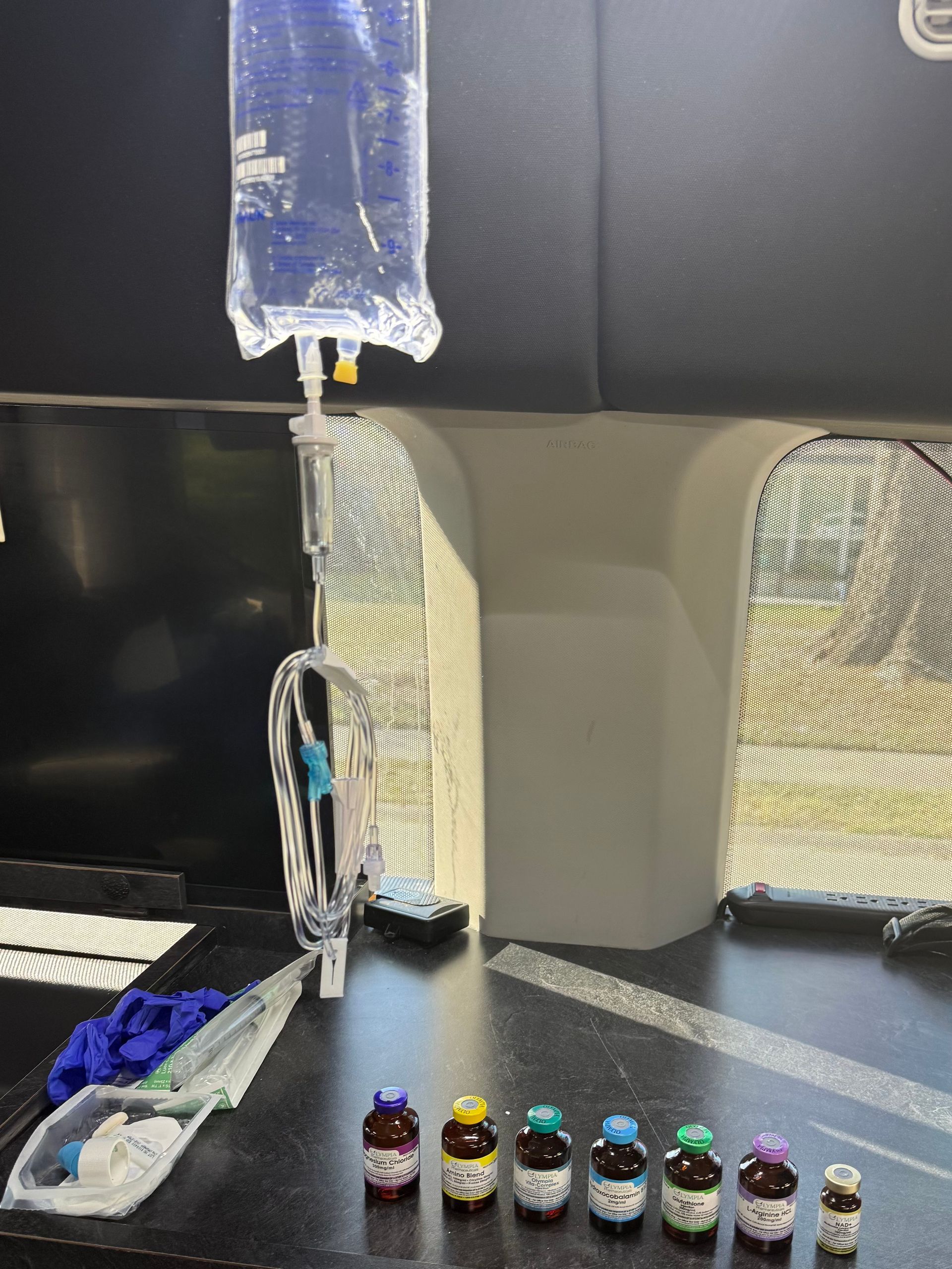 IV fluids that help replenish the water you lost when drinking too much the night before. They also contain electrolytes, most commonly in the form of sodium chloride, which help relieve symptoms of dehydration, including fatigue, dizziness and thirst.